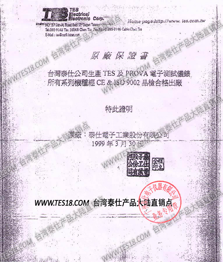 ![]() ![]() ![]() ![]() ![]() 泰仕TES產(chǎn)品原廠保證書 |